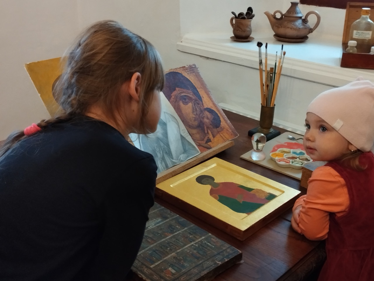 Самое удивительное, что факты из истории и жизни монашества, открывшиеся детям и взрослым во время экскурсии, как-то сами собой в мыслях переносились на нашу сегодняшнюю жизнь, сопоставлялись с реальностью и помогали на многое взглянуть иначе. Когда слушали рассказ о веригах, которыми монахи добровольно, для большего смирения, утяжеляли собственную жизнь, многие захотели их не только рассмотреть, но и померить, и хотя экспонат был самым легким по весу из всех возможных аналогов, даже взрослые отметили, что жить в них постоянно, конечно, непросто. А участвовавший в экскурсии батюшка – протоиерей Максим Бобров, улыбаясь, отметил, что средний школьный рюкзак вполне сопоставим по весу с этими веригами. И это тут же, конечно, прибавило значимости и уважения школьному труду в наших глазах. «Только рюкзак, - охладил нашу важность отец Максим, - не носится на спине дольше, чем длится дорога в школу…»