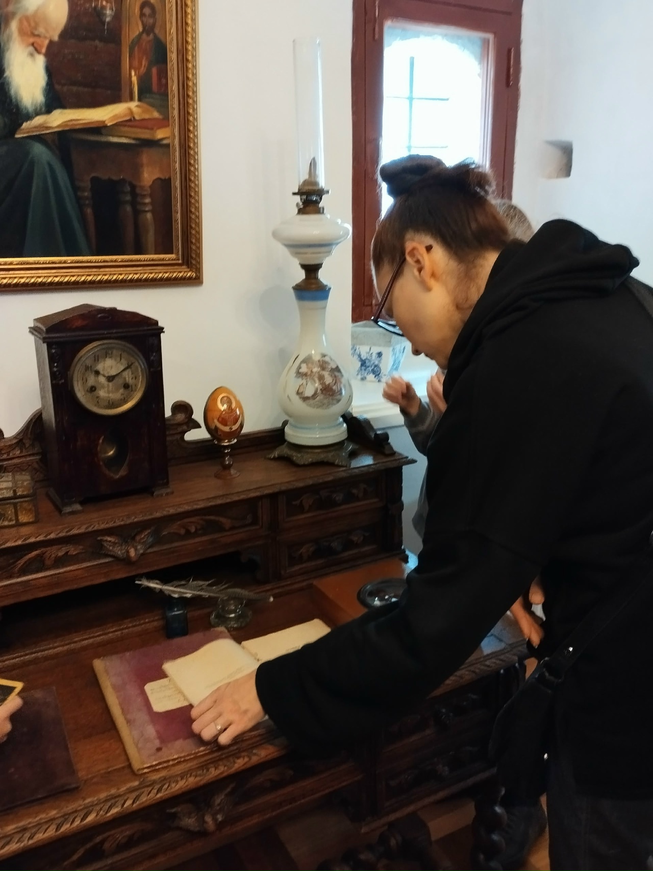 И утварь, и предметы монашеского быта, представленные в музее, можно было посмотреть и потрогать, представив себя то иконописцем с кистью в руках, то гостем на архиерейской трапезе. Кстати, монастырское меню тоже всех удивило. Множество вкуснейших и редчайших блюд, многих названий из которых мы сейчас уже и не знаем, радовало монахов всего несколько дней в году. А повседневным их рационом были просфора и чаша медового кваса.